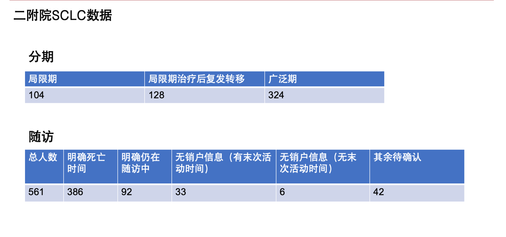 4.sclc随访数据更新:目前无销户信息的有39人,其中6人无末次活动时间;其余42人待确认