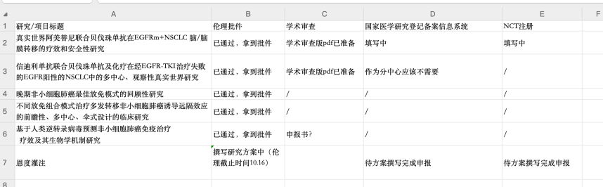 5.伦理及研究方案申报:其中2项要过学术审查,已整理pdf;2项需备案,填写中; 另外恩度灌注研究方案撰写中。